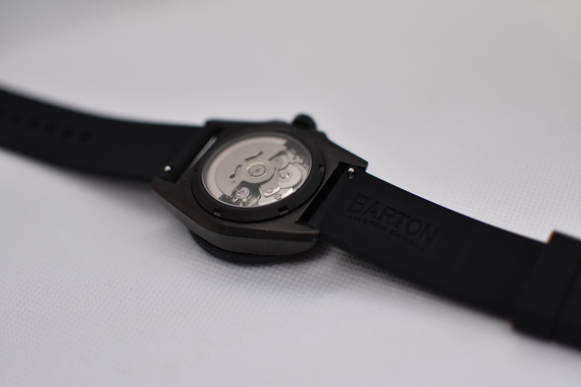 The SEAWOLF comes equipped with a black stainless steel oyster-style bracelet. A black silicone quick-release rubber strap from Barton Watch Bands also standard with a spare set of spring bars and spring bar tool for effortless strap changes and customization.